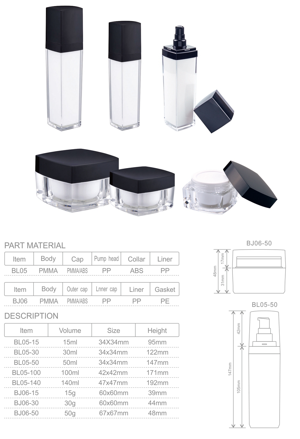 Емкость контейнера | 15 мл, 30 мл, 50 мл, 100 мл, 140 мл, 15 г, 30 г, 50 г |